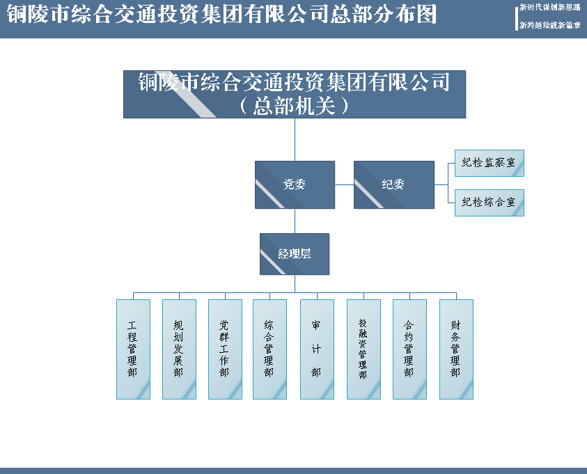 2017年8月18日,市委、市政府立足一江兩岸發(fā)展新局面,決定在原市交投公司整體劃轉新體基礎上組建集全市交通基礎設施項目投融資、開發(fā)建設和運營管理、參與項目謀劃工作為一體的綜合交通投資集團有限公司。注冊資本金109.77億元人民幣,企業(yè)主體信用評級“AA”等級,擁有全資子公司18家,控股公司10家,參股公司11家,是由銅陵市人民政府出資的市屬國有企業(yè)。