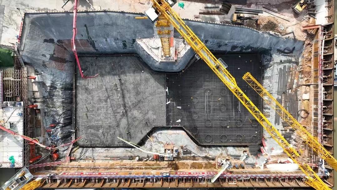 主塔墩承臺是大橋的關(guān)鍵控制性節(jié)點之一,G3銅陵長江公鐵大橋南主塔墩承臺面積3373.5平方米,相當于8個標準籃球場的面積,承臺混凝土高7米。中鐵大橋局G3銅陵長江公鐵大橋項目常務(wù)副經(jīng)理牟翔介紹,為確?;炷临|(zhì)量,在確保滿足混凝土養(yǎng)護周期的同時最大限度地縮減工期時間,項目部進一步優(yōu)化施工方案,混凝土采取水平分層、橫向分塊澆筑工藝,按大體積混凝土技術(shù)要求和工藝配制承臺混凝土,承臺混凝土分2層澆筑,每次澆筑高度3.5米,每層分兩次澆筑,中間設(shè)置2米后澆段?;炷翝仓弯摻罱壴瑫r進行,再次體現(xiàn)了不一樣的G3速度。