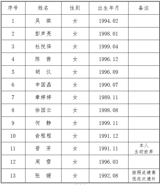 現(xiàn)將交投集團司屬公司銅陵市江北公路管理有限責(zé)任公司收費員、監(jiān)控員崗位招聘體檢入圍人員名單公示如下: