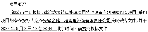 項(xiàng)目名稱:銅陵市生活垃圾、建筑垃圾轉(zhuǎn)運(yùn)處理項(xiàng)目特種設(shè)備車輛保險(xiǎn)購買項(xiàng)目